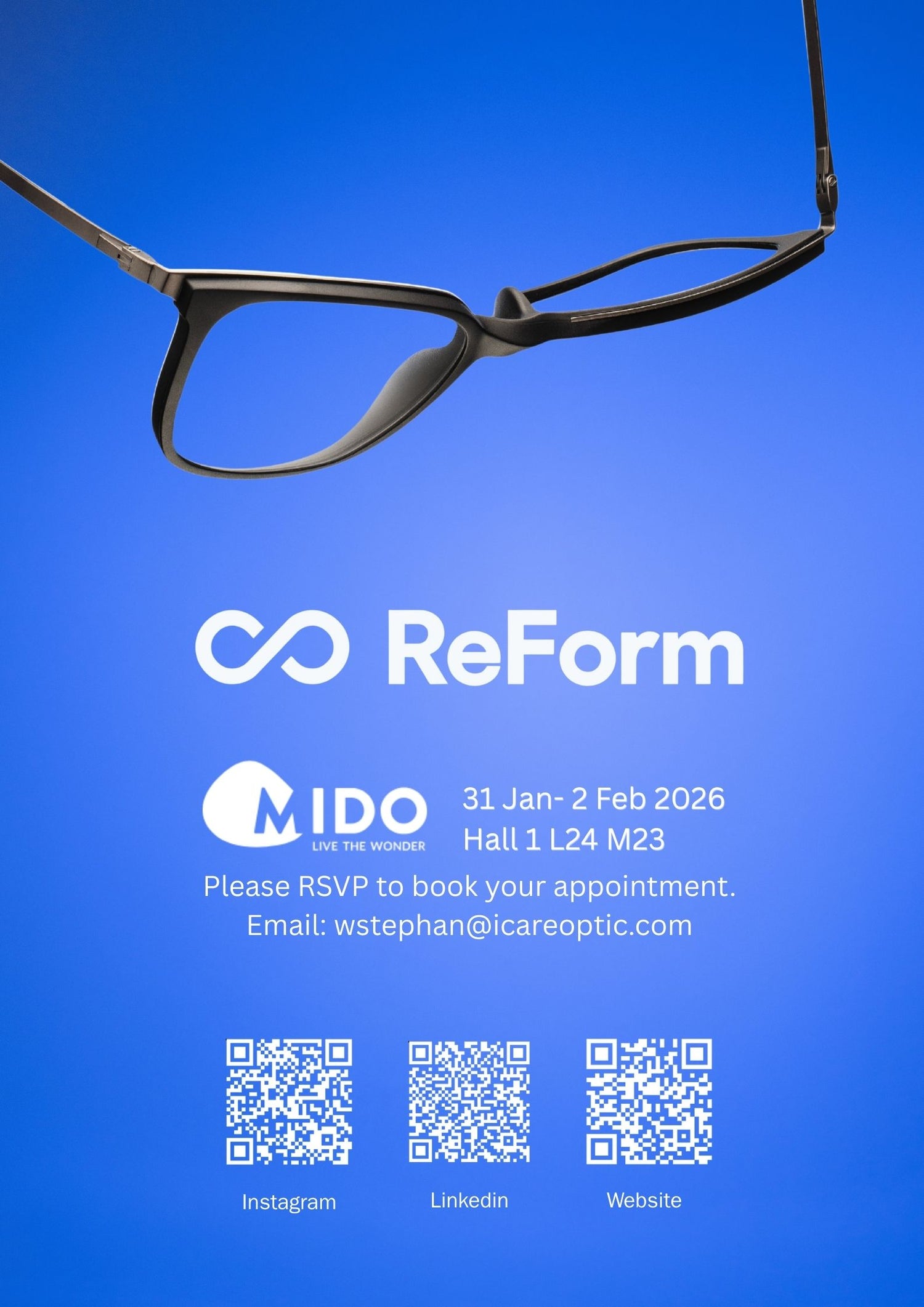 Join us at Vision Expo West, booth P17033. Exclusive preview of ReForm, our lastest eyewear collection launch.